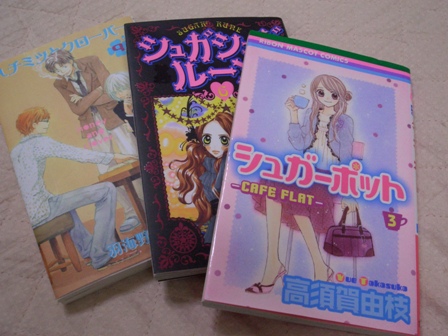 可愛いよねぇ~~この3冊大好きだっちゃシュガシュガルーンとか「マジ待ってたよぉぉ」ってくらい楽しみだったの。やっぱりカワユイ双子のウーとソールが好き!!!!毎回楽しみなんだ【シュガーポット】も可愛い女の子ワールド満載服装とか好きだなぁ~この漫画の影響でお団子頭にはまりました普段いつもそうなんさぁー【ハチミツとクローバー】は今はもうめっきり有名になったね早く映画観たいなぁ~~~~それと、最近姉が購入したモデルの美香さんのビューティー本もちょくちょく見てるんだ