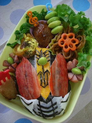 コンニチ(σ゚∀゚σ)⌒ワッ♪今日は日々希ちゃんさんのリクエストで…仮面ライダー電王パパ弁&みう弁実は戦隊系に全く詳しくなくみうの本で見つけるまでずっとゲキレンジャーと間違えてましたむぅ~戦隊系…難しい~…(;´Д`)ほんとは頭のほうにもっとたっくさん細かい線があったんだけどMIUMIU技術ではこれで限界でした~(笑)日々希ちゃんさんこんなんで良かったでしょうか~リクエストありがとうございましたっ(≧∇≦) MIUMIU流作り方も良かったらどうぞ~1.おにぎりを作りま~す海苔で巻いて形を整えてラップで包んでしばらく置いておく。2.お弁当箱に1のおにぎり、おかずを詰めていきます(^o^)3.顔のパーツをそれぞれカットして海苔代わりに少量のマヨネーズを付けてのせていく。4.海苔を細かくカットしてのせれば完成~(Topの写真)(刻み海苔があれば便利そう)目は赤パプリカを使えば光沢があってよりそれらしく出来そうですねウチは苦手で絶対食べてくれないのでカニカマで作りました電王(ツナマヨおにぎり・カニカマ・薄焼き卵・卵白焼き・海苔・枝豆)焼きそば肉団子ちくわのマヨチーズオーブン焼きウインナー豆からくん枝豆(みう) 気軽に感想・質問・リクエストなどコメント頂けると嬉しいですっMIUMIUに出来る限りで(笑)リクエストにお答えしていければと思ってますっヾ(≧∀≦*)ノ キャラ弁ランキング参加中~応援(*>▽<*)ゞよろしくお願いしま~す+まりもん+