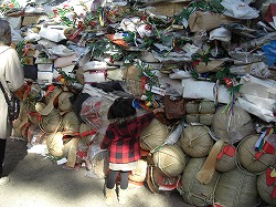 こんにちは~今日から9・10・11日とえべっさん西宮神社で十日戎が行われています~今日前えびすに近所のママ友と一緒に行ってきましたすっごく近所なのに十日戎は今年初めてでそりゃ~も~すごい人人と屋台で埋め尽くしまずは『商売繁盛 笹持ってこい』の 去年の笹を返しに…(思ってたのより捨てるの以外と無造作なんだな~) お参りもして…名物のマグロにお賽銭も引っ付けて…おみくじも引きましたみうとMIUMIU…W凶 ガ━━(゚Д゚;)━━━ン!!!!! なんて運の無い親子…… Σ(゚д゚lll) これ以上悪くならないから良いって言うし…しっかり結んでおきました 今年の笹もしっかり買ってみうお疲れで帰りので爆睡今のうちに今日のお弁当も更新更新 template-まりもん