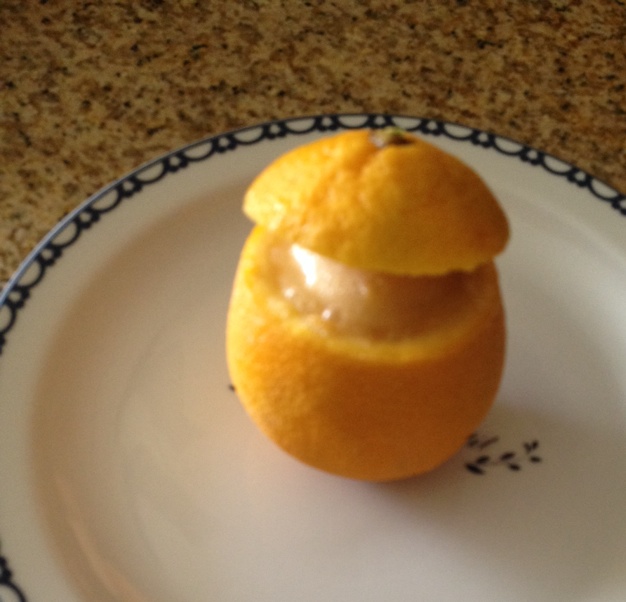 オレンジジュース 250ml (オレンジ小4個 約600g) ココナッツミルク 120ml 水 60ml バニラエッセンス 小さじ1/2 レモン汁 大さじ 1/2 オレンジピール 大さじ1/2 + 1/4 てんさい糖 50g 米あめ 50g 塩 ひとつまみ フープロにすべてをいれて、冷蔵庫で冷やす アイスクリームマシーンにかける