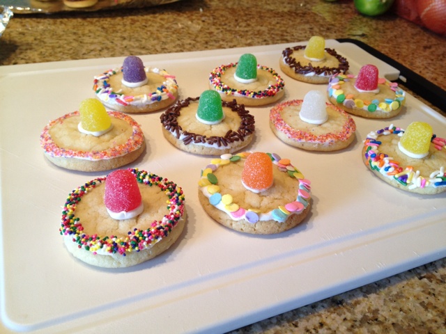 シンコデマヨなので、メキシカンハットのクッキーを作りました☺ シュガークッキーにアイシングをしてカラースプレーとグミでデコレーション(^^)