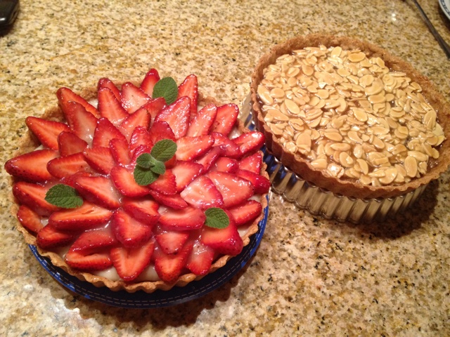 今日はいちごタルトとフロランタンを作りました。 パイ生地は[ベースカフェのマクロビオティックスイーツ]のレシピ。菜種油はココナッツオイルに変更。そのままの量で18cmタルト台2個分作れました。 アーモンドクリームは[チャヤのからだにやさしいスイーツ]のレシピ。半量で二つ分。こちらも菜種油の代わりにココナッツオイル使用。 いちごタルトは豆乳カスタード(チャヤ)、いちご、グラサージュ(チャヤ)で仕上げました。 フロランタンもおなじくチャヤのレシピ。 少しずつ上達してきた気がします❤