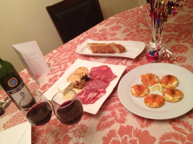ワインがすすむおつまみ クラッカー ブリーチーズ スモークサーモン の組み合わせは最高です!
