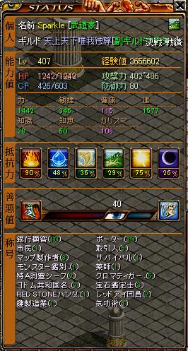 こんばんは(・∀・)今さっき初納骨というのをチャレンジしてきました(;´д`)DFのしすぎで3回も死んでしまった。。w非常に申し訳なかったですが、あれぐらいの方が楽しいですね!フォーリンから納骨へと進むと…なんか難易度の差に愕然としましたwスカイプしながら、一緒に行ったPT面子に…「ここ!?突っ込んでいい!?」「DFするよ?大丈夫?」とか、もうとてもかわいかった俺慣れてきて途中から「アチャからタゲとってる俺ww」とか言ってたのは仕様です。レベルは407になっちゃったんですけど・・・ステ公開します!知り合いの550程度のシフに聞いても、力多すぎと言われますwでもある程度ないと効率悪いし~、まだハンズ仕様で回避は狙ってないのでおk!としています。ダメのSSとか忘れたけど(;´д`)ごく普通の紙シフなんで、秘密で出会ったら優しくしてあげてください(´・ω・`)シフがんばって稼げるキャラにするどー!ではではっ(∀)ノシ