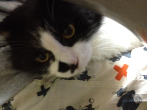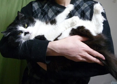 ネミさんを抱っこするとゴロゴロ言ってくれます。この季節、ぬくぬくで気持ちいいです。抱っこすると、こういう「何ですの?」という顔をします。そこがたまらん。