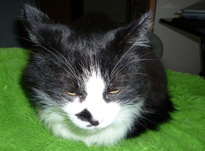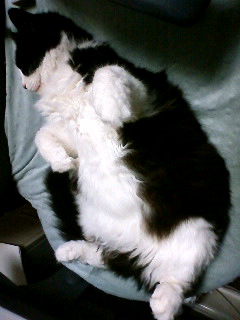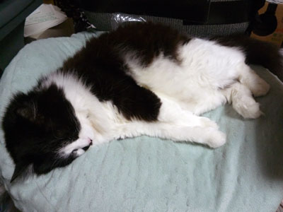 ネミさんのためにご用意した椅子。しかし、暖房の直撃する席が良いらしく、結局私の椅子に乗ってきます。「ふふん」あんまり気持ちよさそうに寝られると動かせません。これネミさん、ネミさんや……。まぁいいか……。