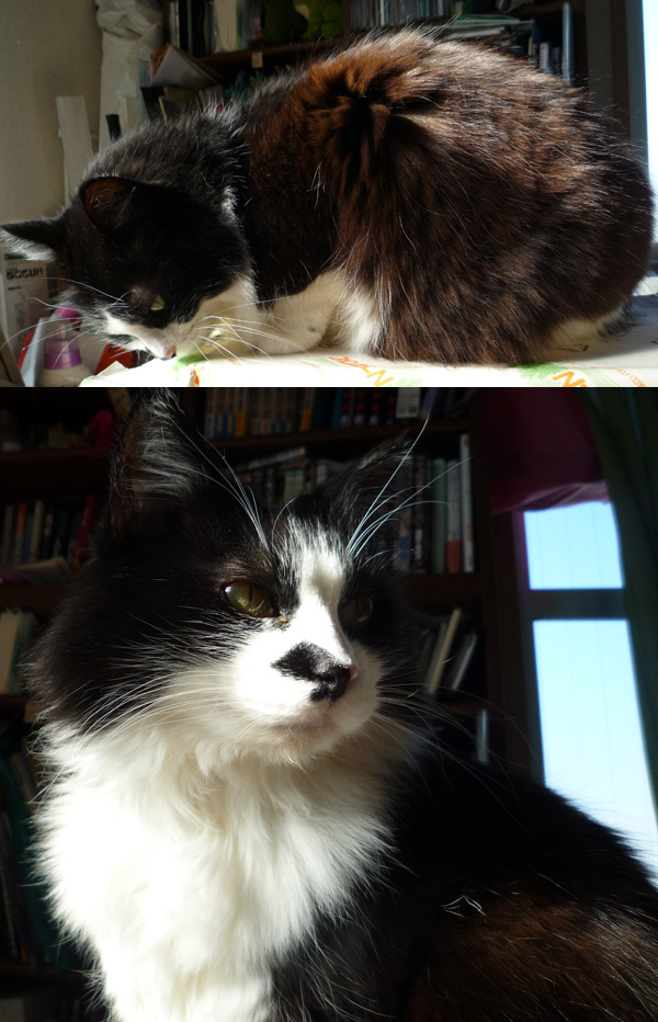 「久々の登場と思ったら……これは誰なんですの?」新しい弟ですよ、ネミさん!「またですの? 聞いてないですわ! この家にもらわれてきたときは私一人でしたのに!」子供が生まれても、ネミさんはいつまでも大事なネミさんですこれからも元気でいて下さいね。さて、年に1度のあの日がやって参りました! 「今年もヒドイ目に遭いましたわ!」~すでに事後~予防接種しましたし、今年も健康ですね。今回は病院が混んでいたせいか、スタッフが奥に連れて行って注射したので、ネミさんの勇姿を見れませんでした。体重は、前より太ったんじゃないかとドキドキしましたが、変わりなし。さて、最近はmy365というサイトのほうに写真をポチポチ上げています。なかなか落ち着いてブログを書くのが大変になってきましたiPhoneで写真を撮ってそのままUPできるので、せめてこっちで写真だけでもアップできればと思います。興味のある方は宜しくお願いします~。http://my365.in/_todaten