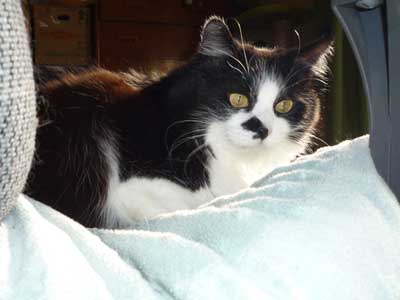 私がトイレに立つと、ネミさんが颯爽と席を取るので、最近は進んで椅子を差し出しています。夕刻になると日なたが移動するので、それに合わせて椅子も移動してみたり。日なたのネミさん。「機嫌よろしくってよ!」
