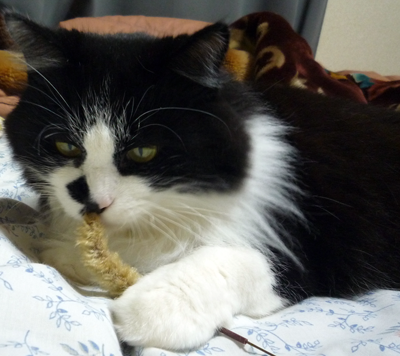 最近、おもちゃへのくいつきが悪くなったなぁと思われたネミさんでしたがエノコロ草タイプというスタンダードな猫じゃらしを買ったところ、すごい食いつきです!文字通り食い付きます!「あげませんわよ!」(カッ!