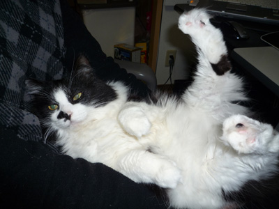 なんだか久々になってしまいました。ねみさん、エサ皿の前に座ってごはん待ちをするようになりました。こ、これがどの家の猫もやるという噂のおねだりか! 可愛いじゃないか!……かといってエサをほいほいあげたりはしないのですが、心持ち太ってきたような? 食欲の秋のせいかな? 冬毛のせいかな?PCの前で「構え!」とアピるネミさん PCの前で以下略 無防備なポーズで可愛いわたくしをアピるネミさん
