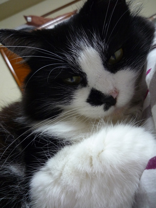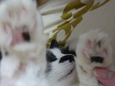 寝ている写真はつまらないと旦那に言われるけれども、猫が寝ている姿は幸せそうに見えて好きだったりします。ああ~このワンポイントの黒い肉球が~。キリッ!は~猫のいる暮らしはたまらんです。自由気ままなニャンコが家に居てくれる幸せ!