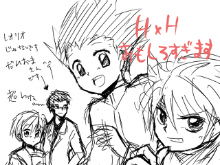 ハンター再熱しそうだぜ……あ、もちろん犬はオールウェイズ、熱は1年7カ月前と少しも変わりませんよ!誰も聞いてねぇwwwww↑見ないで描けるかな、をしたら大変ひどいことになりましたよっていう↓恐ろしく描き方忘れていましたwwwwwwwwwwもうレオリオとかひどすぎるぜwwwwwwwwwwwwwww↑のレオリオは別人ですから。ハンターはゴンが異常に好きだったのを覚えているぜ!キルアよりゴンだろ、な人です。キルアもかっこいいんですけど、やっぱりゴンのかっこかわいさには負けるぜ!あとクラピカかなぁ。クラピカ女の子だったら良かったのに……と初期の頃は思ってましたが、今ではもうどっちでもいいよ!!一度だけアニメの遠目のシーンで胸があるように描写されてたからもう最初は女の子だと信じてましたwwwwwwwあと女の子率が非常に低いので、シャンプーだっけ、あの子とか幻影旅団の女の子とか、アニメオリジナルだった気がする女の子(父親の仇どうの、とか言ってた)とか女の先生メンチだっけ、あの人が出てくるたんびになんか場面に華って感じでよかったです。でもビスケだけは解せぬ。なんかもうあのゴンとキルアの間に入ってくんなイライラみたいな感じに耐えれませんでしたwwwwwwwwwwwwいくら中身ばあちゃんとはいえwwwwwwwwww最初から旅してたとかそういうんだったらいいんだけど、いきなり入ってくるっていうのがなんとも……(´・ω・`) あーあー。アニメ良かった……原作はえぐかったけど……またやらないかなー。とりあえず冨樫さんががんばってくれないと再びアニメ化とか無理だよな…。アニメの作画綺麗だったなー。オリジナルストーリーがいちいち神がかってて好きだったんだけどな。OPですごい感動した覚えがあるぜ……!!あー。引越し終わったらまた見ようキリッではでは、また^^ノシ☆