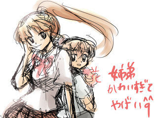 すごく楽しかったです!!全員でプリクラ撮るとか無茶言ったとき以外は!!100円返せ!!^p^でも、ご飯食べてる時とか、ねるちゃんと一緒にめぐったりした時は楽しかったですー!!ジャスミン茶がめちゃくちゃ美味しかった……^p^ねるちゃんと一緒にプリクラもとったよ!!服を一緒に選んでもらってとっても助かった!!ありがとね、ねるちゃん!!おしゃべりも楽しかったし、というか、ねるちゃんとこういう風に買い物一緒にするの……初めてじゃね??ねるちゃん結構遠くに行っちゃうので寂しくなります(´・ω・`) 元気でね、帰ってくる時は言ってね!!ブログとか覗くからね!メールもいつでもいいぜ!さてさて帰ってからなんか落書きをたくさんしてしまったので、その一枚を載せておきます。↓姉弟かわいい死ぬ^p^どうしてこんなにかわいいのか……しかしながら私の絵ではかわいさは伝わらぬ……orzそしてちゃっかり学パロでごめんなさい……。珊瑚ちゃんの制服の似合いさにフイタwwwwwwwwwwwwwwwwwかわいいなぁ……。琥珀くんはやっぱり私服が可愛いぜ!!パーカーいいよパーカー!!テンションが夜のテンション!!(・∀・)アヒャ!!163見たい!!ああでも159も見たい!!だがしかし記憶戻る回も見たい!!姉弟全回見ればいいんじゃないか!!あ。そうしよう^p^完結編も見ようニマニマあれは……やばいぜ……←19、20のイケメンが以下略またしっかりイケメン琥珀描きたいぜ!!珊瑚ちゃんはもっとかっこいいのを描いてみたいぜ……。飛来骨投げるところもいいと思うけど、やっぱり剣とか鎖とかいろいろ使って戦うのがかっこいいと思う。特に仕込み武器がかっこいいと思う!!そんなこと言ってたら29らへんを見たくなってきたぜ!!あそこらへんの法ちゃんかっこよすぎ……。琥珀くんも犬と戦うところがかっこよくて萌え禿げるかと思った……。ふぉおおおしかしながら犬、あそこまで殴る事無いと思う…………。あれめっちゃ痛いぜ……。顔面三発ってお前wwwwwwwwwwwwwwとりあえず明日はお出かけなのでそろそろ寝ますー!ではでは、また^^ノシ☆