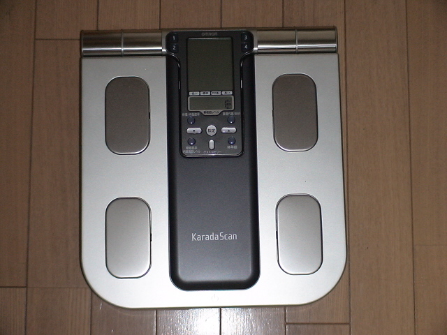 今日は会社の帰りにヨドバシカメラで貯まったポイントを使い、KaradaScanを購入(タダ)。香取慎吾のコマーシャルで有名なOMRON製です。ちょっと前の機種ですが、骨格筋率や骨格筋レベル、内蔵脂肪レベル(BMI)なんかがわかるスグレ物です。これで毎日計測し、骨格筋率UP→脂肪撃退、体年齢20代を目指します。ちなみに、本日の体重/81.3Kg、体脂肪率/17.6%、骨格筋率/36.4%、内臓脂肪レベル/8、基礎代謝/1835Kcal、BMI/24、体年齢/38才。う~ん、搾り甲斐のあるカラダ・・・。