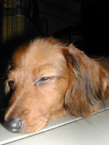 夜ねるときに。。たしか、、横でディがねていたはずなのに。。 朝は。。おねえの部屋でねている。。ごそごそ。。寝静まったあとに、、ディを奪回するために。。 おねえが。。こちらへきて、、連れて行くようだ。。 おねえの部屋は暗いので、、ちっともおきてこない。 おねえではなく、、ディだけど。 今朝も声をかけたけど、、ちっともおきてこない。。最近は本当にねぼすけディになってしまったな。 さて。。バトンをしましょう~~♪ ☆ルール☆ 1.回された人は、コメントして必ず受け取る。 2.やりたい人は、コメントすればやってもOK。 3.絶対に落とさない(指定した人が持っていかない場合は、他の人へ)。 Q1 愛犬の名前の由来は? キャラクターの名前、ママが好きな香港の俳優さんなどから来ています。Q2 呼び名はそのまま?それとも、違う呼び方? ディ、 ディコ、 ディコちゃん などQ3 今、犬欲しい病? 欲しいかな。。女の子もいいかな。Q4 もし、飼うなら犬種は? ダックスが一番だけど。。 ゴールデンレトリバーもいいかな。。大きい家に住むことができたら。Q5 行けるなら、愛犬とどこへ行きたい? 海にいきたい。Q6 そこへ行ってなにがしたい? 海にいって、、砂浜をディといっしょに散歩したり、、走ったりしたい。Q7 あなたの愛犬の将来の夢は? ダックスジャニーズ事務所に入ること。。(まだいってる。。) ブルちゃんにわんわん攻撃的にならないこと。。 ママといっしょに、、ず~といたい。Q8 もし愛犬が、しゃべれるようになって、1番最初に言う言葉は? おかえり~おかえり~おかえり~だとおもう。。Q9 愛犬の短所は? 玄関ベルがなると、、すっとんでって、、わんわんほえること。。尻尾がすごくぴんとたつ!Q10 愛犬の大好物は? わんこ用にぼし、、とキャベツ Q11 愛犬の特技は? 人の横であるくこと。 お座り、お手、おかわり、伏せ、ば~ん(でねころぶ) もってこい。Q12 愛犬の変だけど、憎めない所は? ○んちするときに。。足をあげてする。。ひどいときは両足。Q13 あなたの犬ばか度をパーセントであらわすと? 80%くらいかな。。 ワンコグッズをみるけど、、みさかいなくは買わない。(つもり)Q14 最後にこのバトンを回す人をどうぞ!(3人) お願いするかた。。お時間がありましたら。。お願いします。 4わんずの素敵なまま kurokarintiara さん かわいいピコちゃんのまま ☆ピコ☆ さん 運命的な出会いをしたアロマちゃんのまま あろはは さん よろしくお願いいたします。 ☆ 今日はお昼におさんぽいったら。。ママもアちゃんも暑い暑い!っていうんだよ。。 なのに、、僕にt-シャツをきせるんだよ。。帰りはべろがでちゃった。夜はおねえちゃんといっしょに いったんだ~~ お散歩いっぱいでつかれたよ~でもうれしかった~~☆