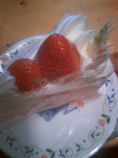 シンプルにショートケーキで。。 (テレ朝でのお祝いケーキみたかったな。。今日はいいともでお祝い?するね) 僕もアちゃんが お土産にかってきてくれたんだよ~~~ ケーキだらけだあ~~ うれしいな。