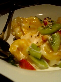 写真はレストランで食べた。。えびマヨ。。ヨーグルト、果物ありでした。