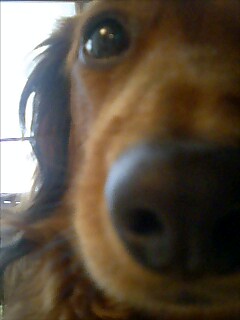私の横でディがぐっすりねむっていましたが、、むくっと起き上がりました。