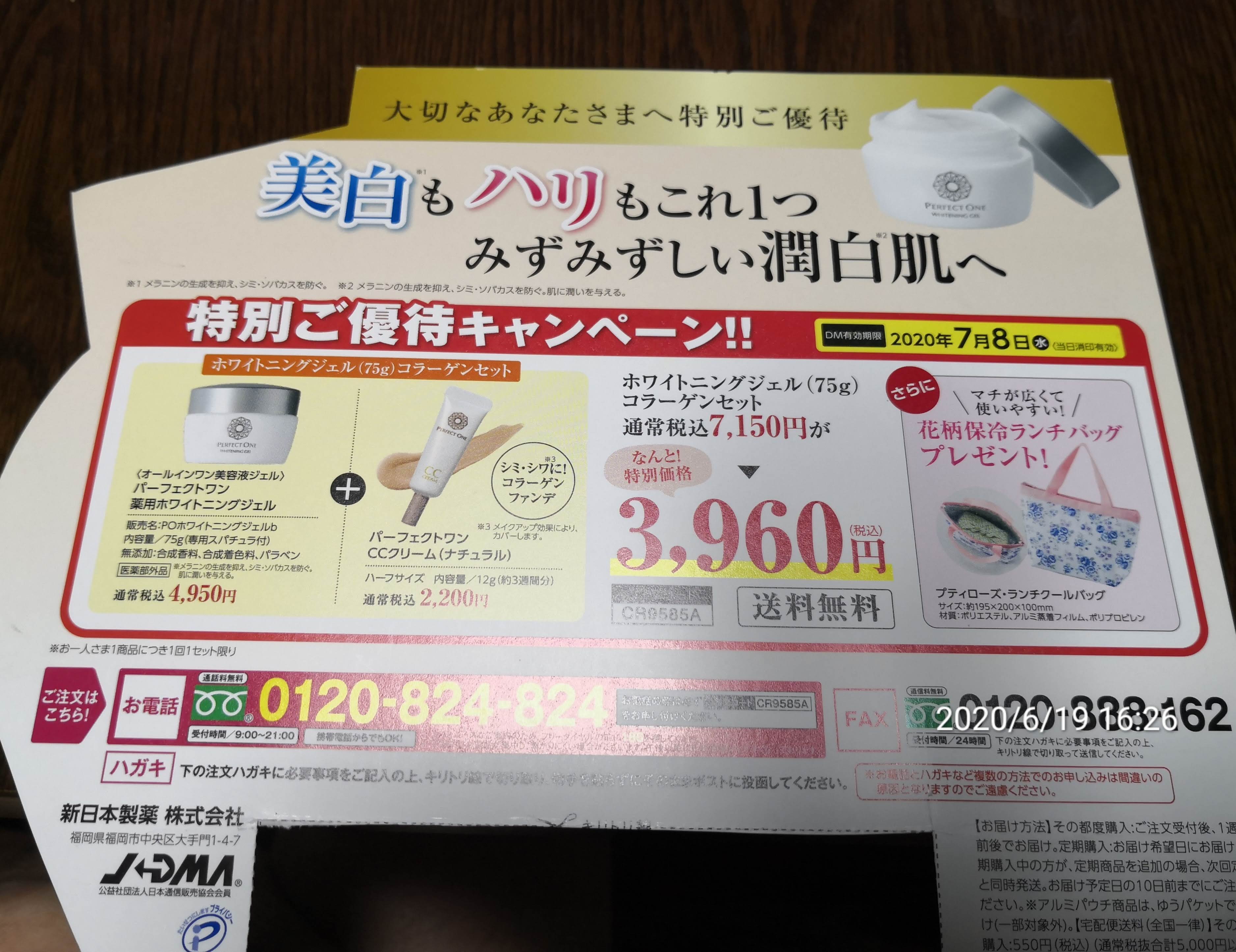 奥さんが注文した化粧品が届いてた。DMが届いたのですぐに注文したらしい。釣り針が目の前にあるとすぐに食いつく魚みたいでも安かったんだと。確かに安いみたい。2200円のクリームも付いてバッグみたいなのも付いての価格はお得みたい。普段は買わないという、さすがだ