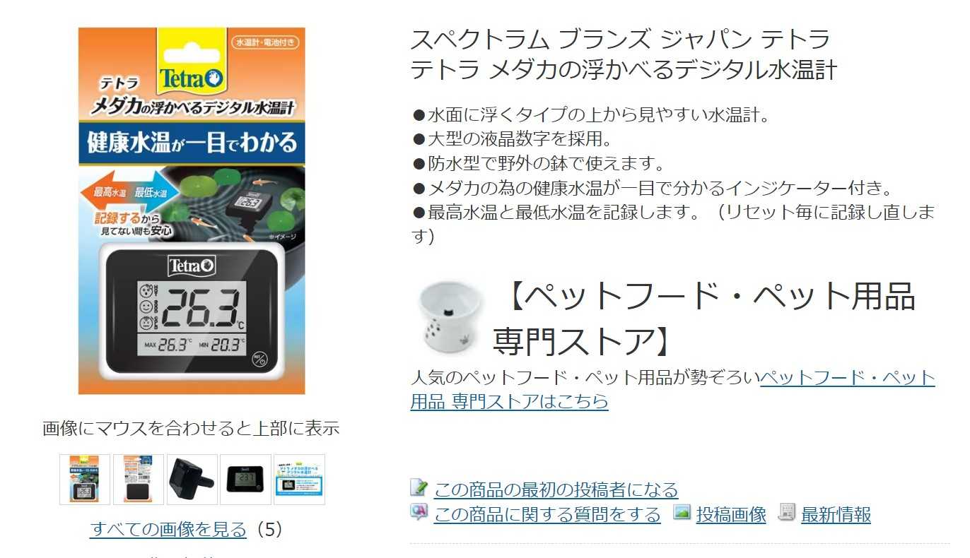 先日ヨドバシドットコムさんにリクエストして注文した水温計が届いたさっそくセットして23度設定の室内のメダカの容器に浮かべると22.9度と22.8度で誤差は0.1度だこれは優秀だと思う●水面に浮くタイプの上から見やすい水温計。●大型の液晶数字を採用。●防水型で野外の鉢で使えます。●メダカの為の健康水温が一目で分かるインジケーター付き。●最高水温と最低水温を記録します。(リセット毎に記録し直します)なかなかいいねぇしかし落とし穴が待っていたセンサーは1年くらいで劣化するので新品を買ってくださいだとな~に~?1年でお釈迦ってかそれはないや次はないな