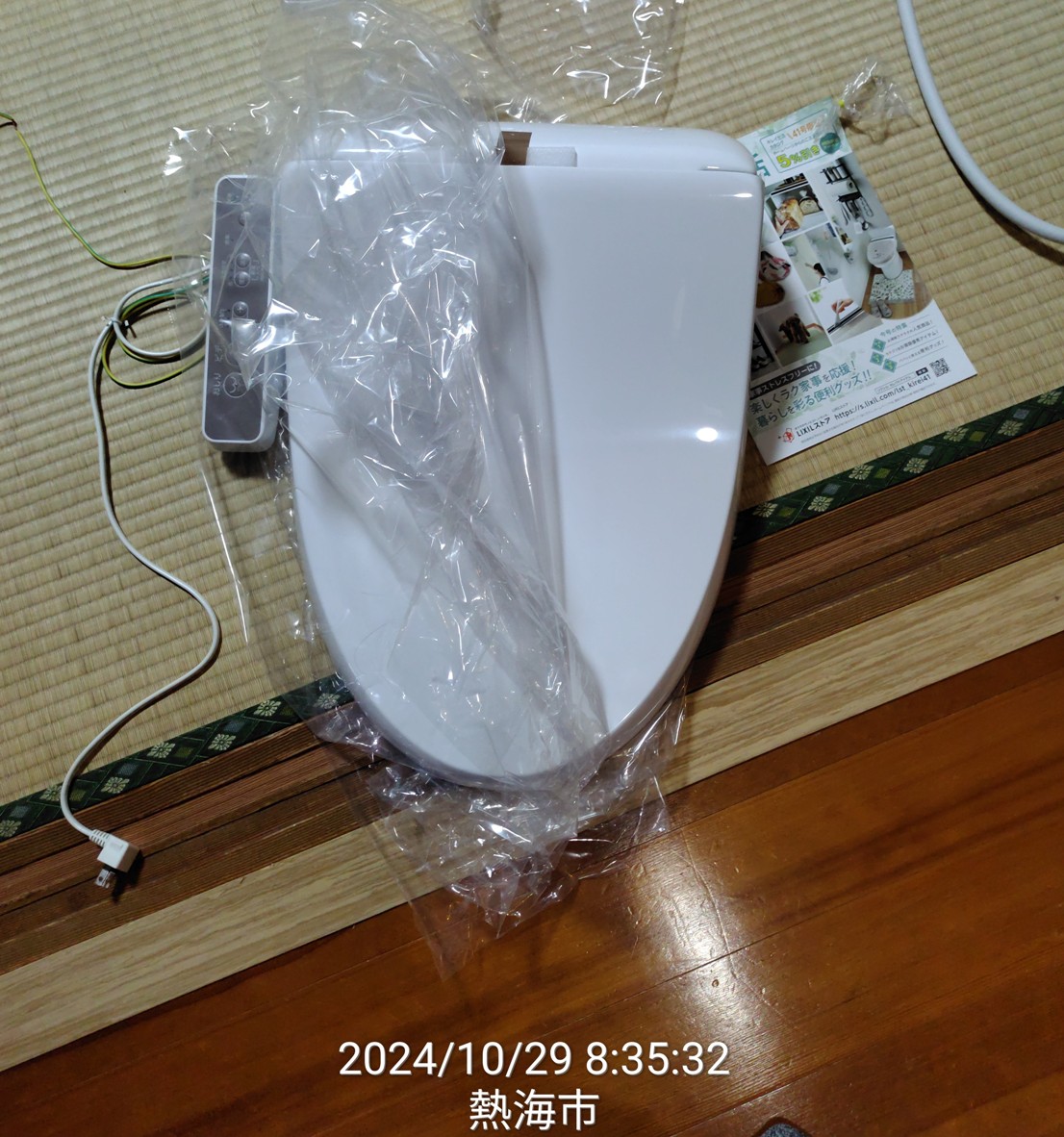 パナのトイレを2台同時購入して使ってた最近になって1階のほうのボタンの反応が悪い数回押さないと反応しないということで買い替えだ多機能要らないということで安いこれにしたレビューは良いのでいいと思う到着したら自分で付けるつもりでいたがいつもの馴染みの業者に取付依頼した廃棄の処理もあるしタンクの水も少しポタポタしてるこれは自分がマメに調整して止めてたけどもういいやこれも業者に部品を探して交換してもらうことにしたなんせ築40年以上経っているから部品もオイラでは見つけられない探してもらって取付もやってもらうつもりだ