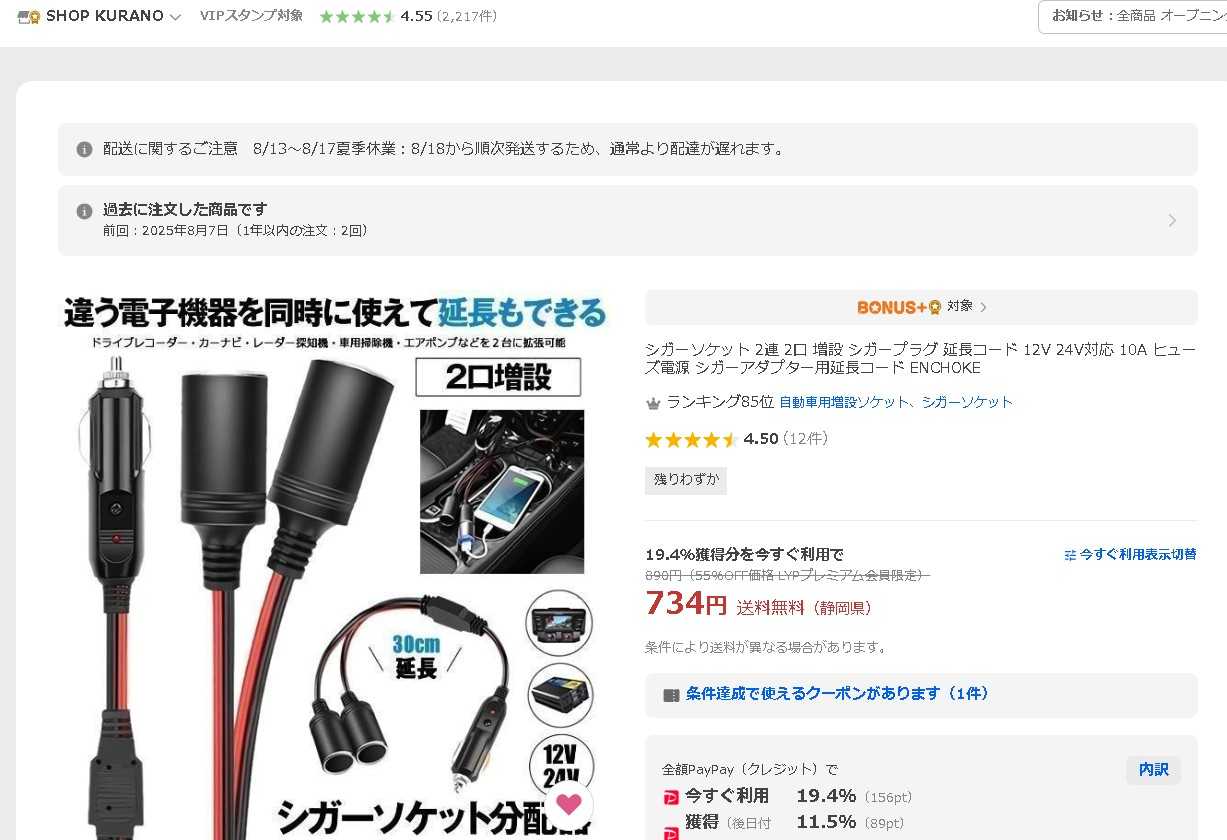これをひとつ購入して使ってた調子がいいから2個目を購入暑いから取り付けせず今日は少しはマシなのでさっさと取り付け、、、、ところが片方のソケットが断線しているようで通電しないいろいろなもので試したがダメならばと安モンのテスターで調べたらやっぱり断線しているようだ断線なのか分岐しているところがハンダ?が外れてるのか?とにかく使えないショップに連絡するかまぁ初期不良なんてあるあるだから驚かないよその後、ショップから回答があった新しいのを送ってくれる不良品は送り返さないでこちらで処分となったそうだと思う不良品は二股になってないんだからただの延長ケーブルみたいなもので存在の意味がない