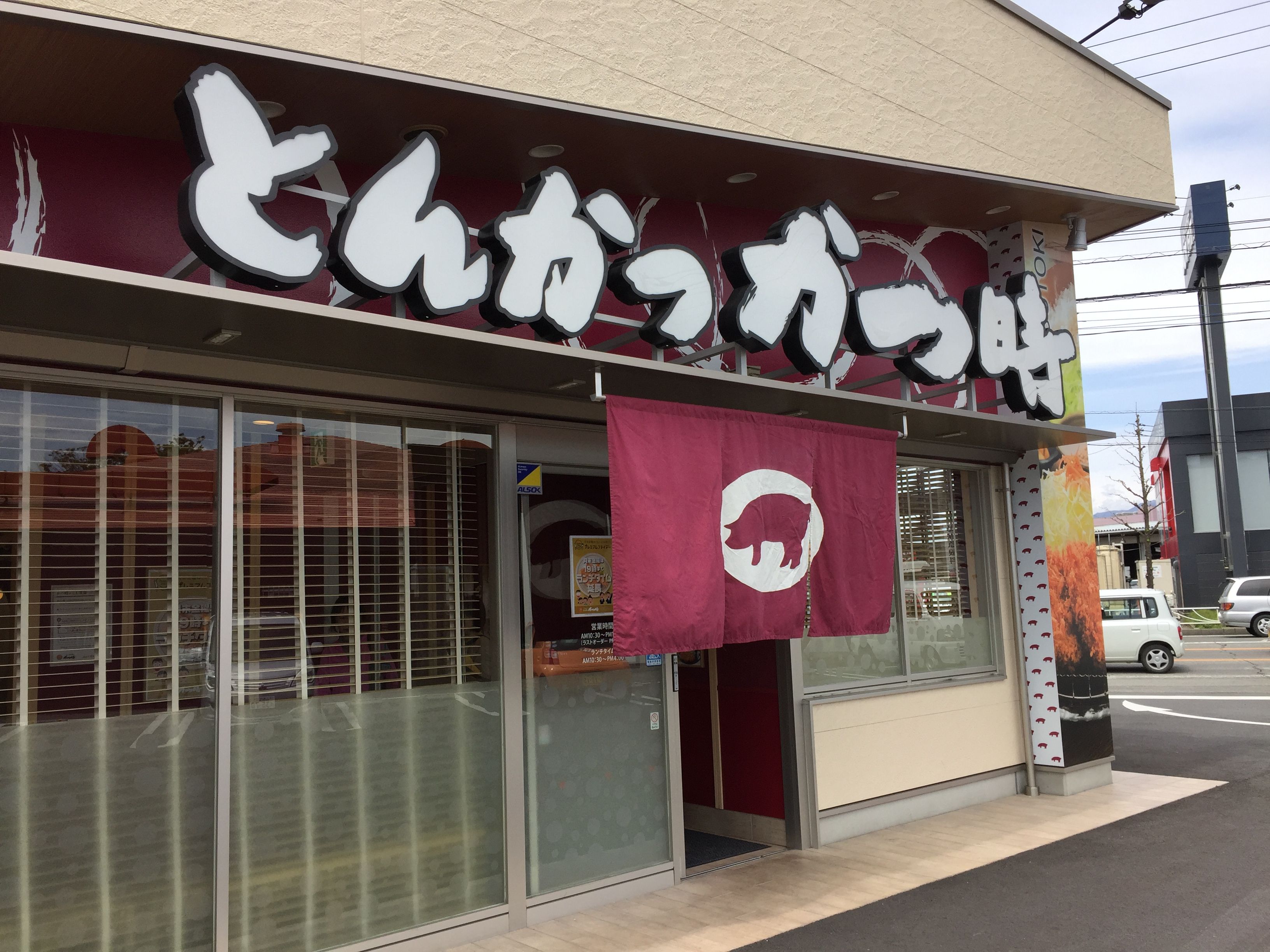 順調に走っていったのだが赤信号で止まった交差点で左にとんかつ屋の店があった。
