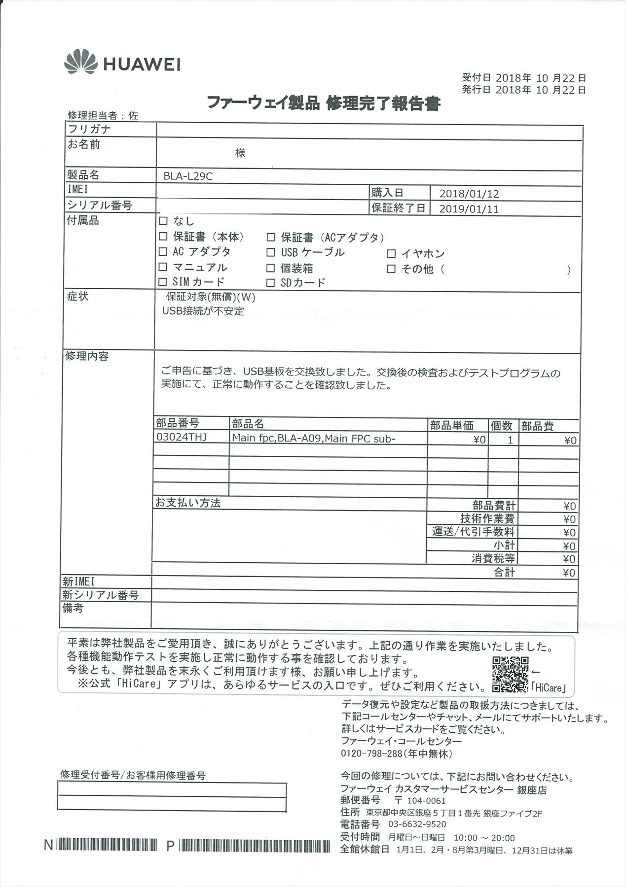 前回来たときは充電するから良しとして帰ったんだけど帰宅してHUAWEI Mate 10 Proについてきたケーブルでやったら充電するから安心してたんだけどPCではデバイスを認識しなくてケーブルをちょっと持ち上げると認識するけどこれでは不便だからみて欲しい、と伝えた。