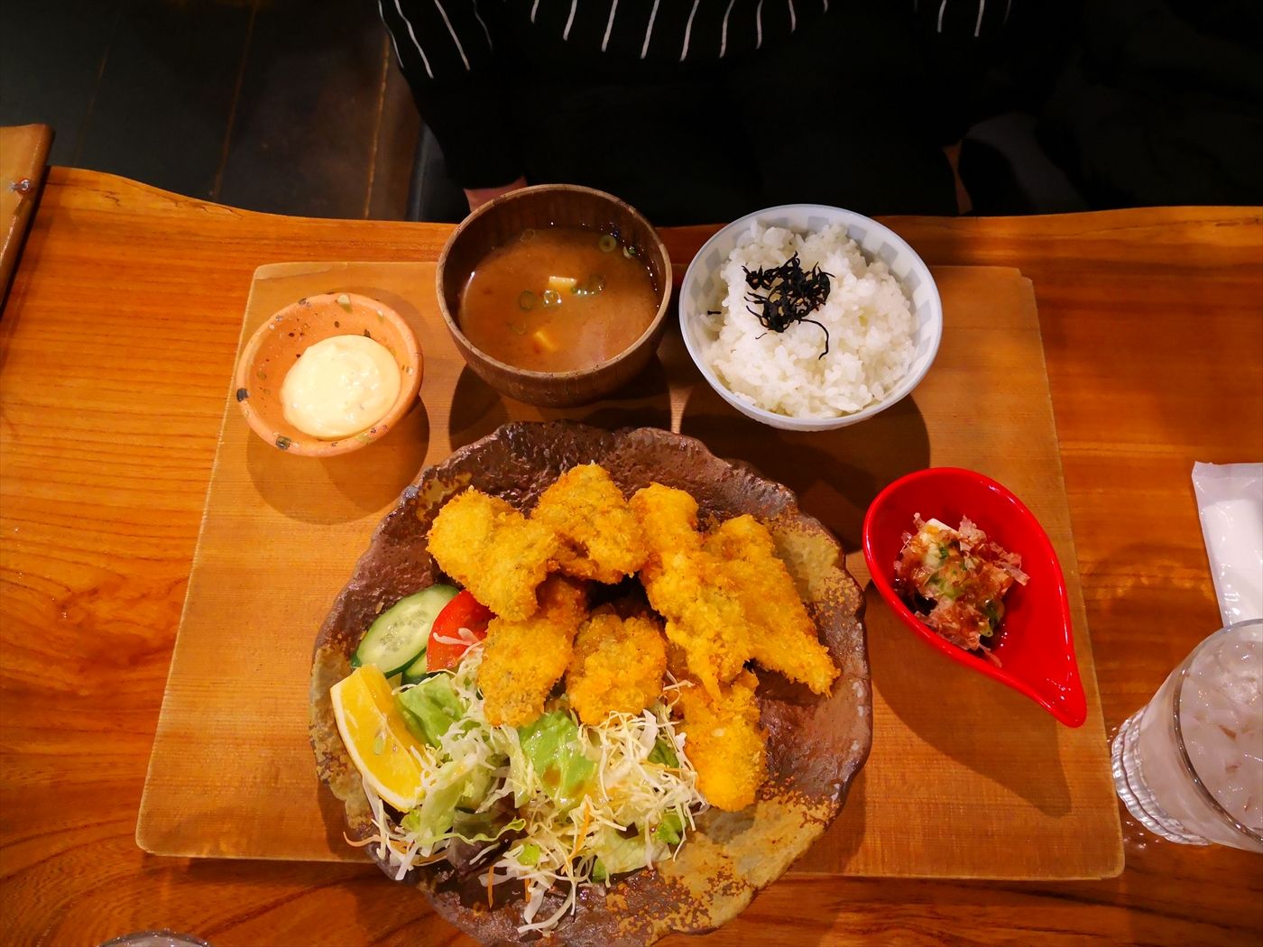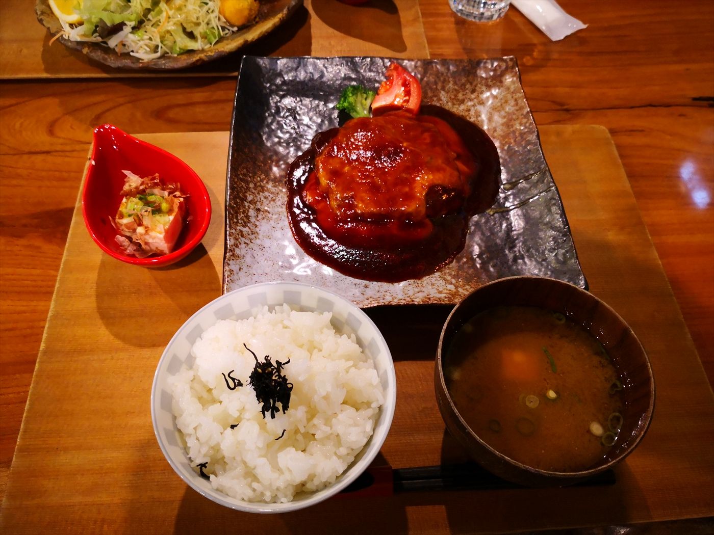 オイラはチーズハンバーグ定食、奥さんはカキフライ定食。