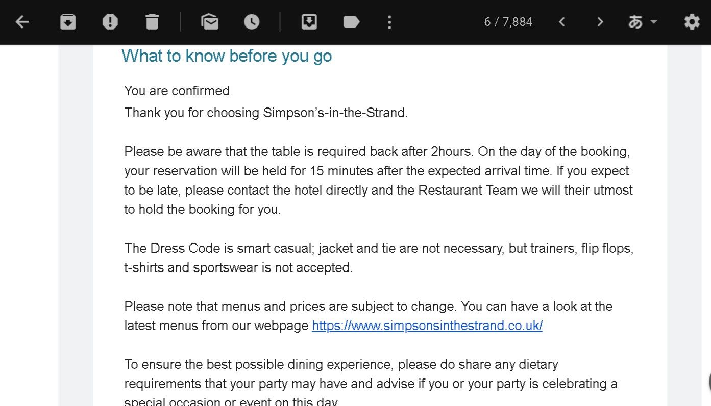 What to know before you go You are confirmed Thank you for choosing Simpson’s-in-the-Strand.