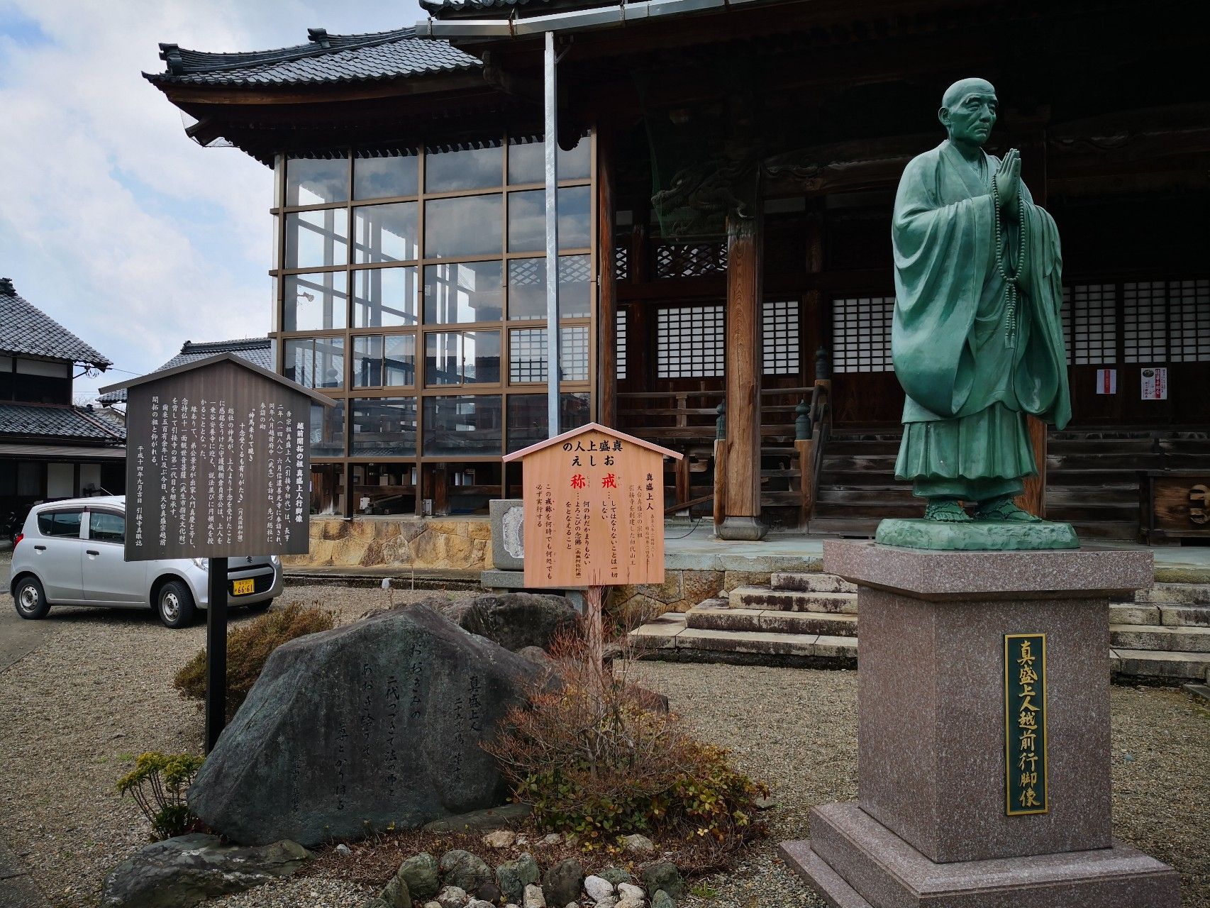 平泉寺に行ったけど雪がすごく降ってきたので見るのはやめた。