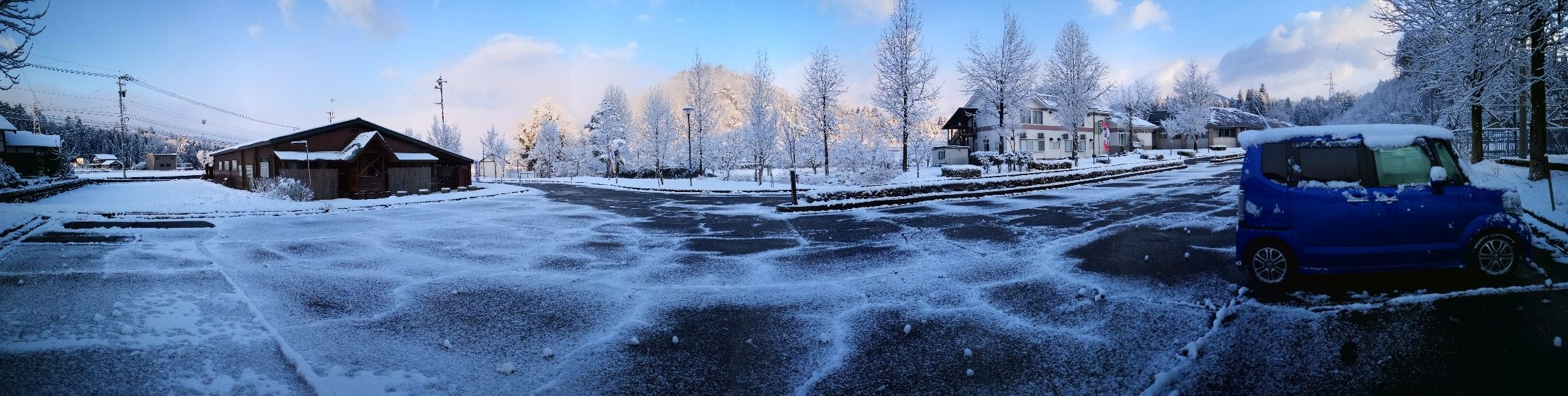 朝起きたら雪だ。