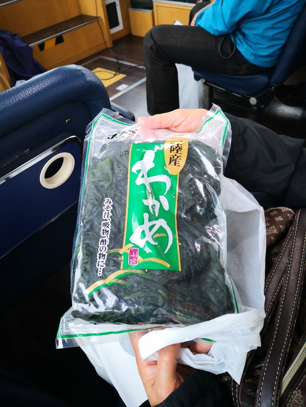 船内のオバチャンの口車に乗せられてワカメ2つ買う。