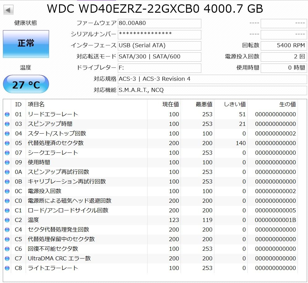 CrystalDiskInfoで調べたら2台とも同じ数値だった。