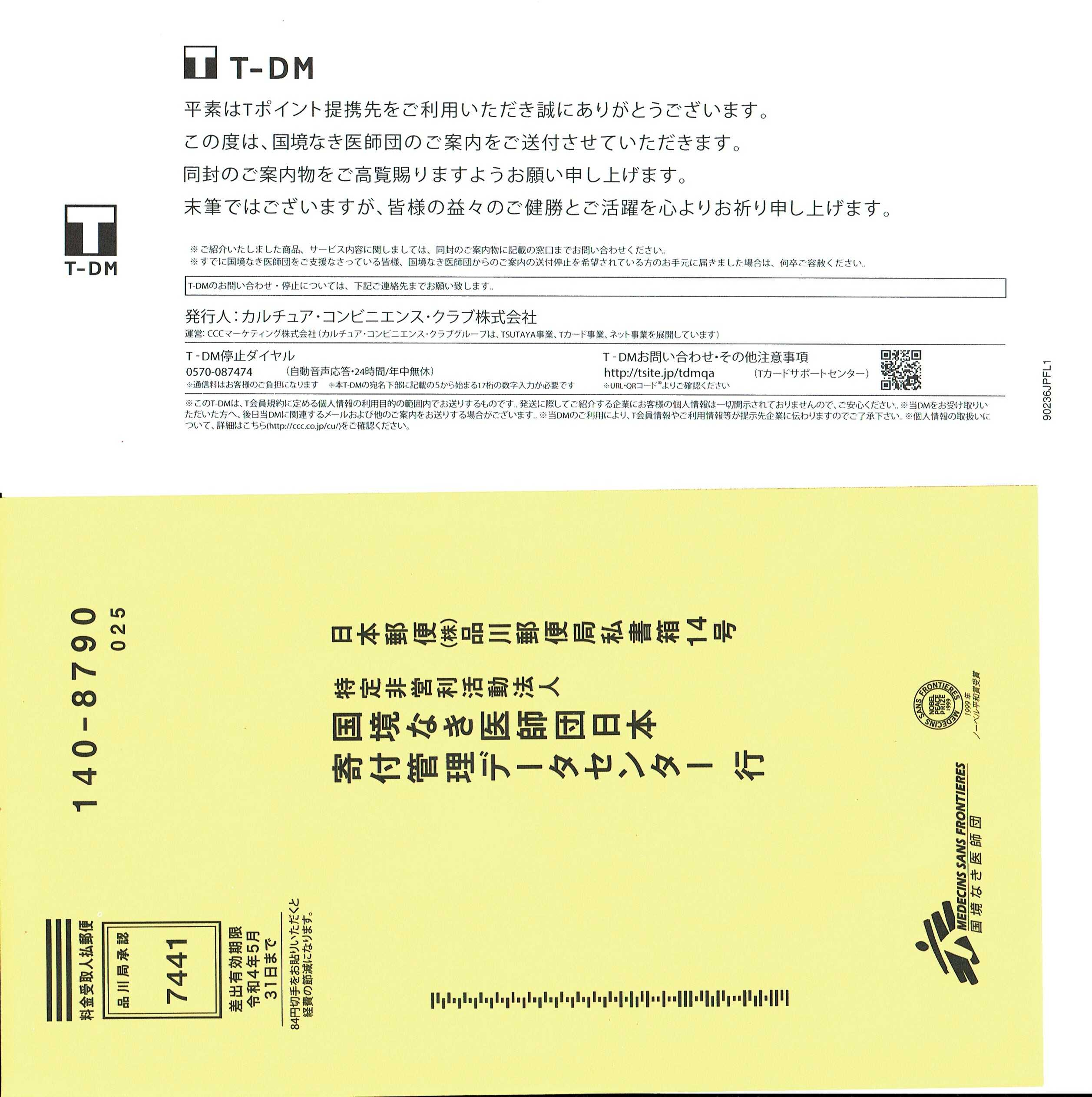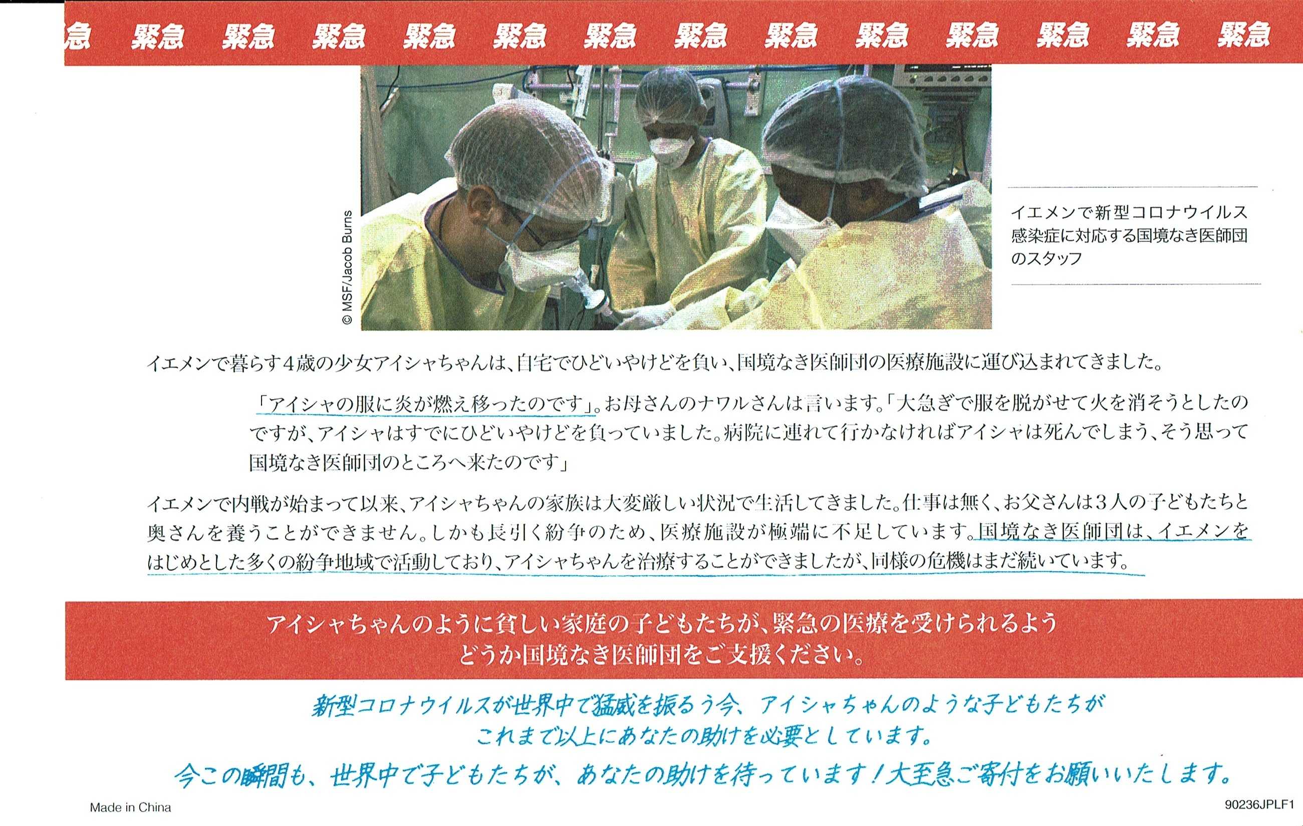 国境なき医師団日本から手紙