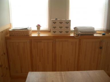 ダイニングの東の窓下に、物入れを造りつけしてもらいました。これがまたいい!!長さが280cmもあるので、なんでもここに詰め込みます。おかげでリビングもダイニングもスッキリです。取っ手はこんな感じ。少し前までは白の陶器のものをつけていました。また戻そうかな・・。たまに替えると新鮮でいいです