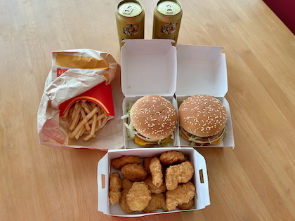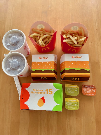 自称、無添加オタク。なるべく無添加で、無農薬で、無化学肥料で、自然畜産のものをいただきたい………と思っているけれど、ままならず😂食べたいものを我慢するストレスのほうが心身に悪い、と思ってしまうので💦そして、、、、、さらなる毒物を食べたい日も少なからずあって😆……………ということで、これ💖今日のランチ。どーしてもビッグマックが食べたくてね〜~~😍夫も「いいよ。食べたかったんだ」とすぐに賛同してくれて、買ってきましたよ🍔🍟&ビール🍺🍺ナゲットはキャンペーン中だったので15個入りを💖ソースはこんな感じ。。。GWも残すところ3日。いつも通り楽しく過ごしたいと思っているのでした👍👍👍