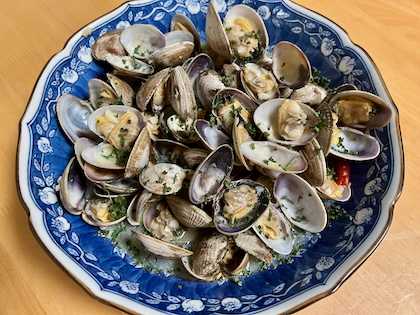 あさりって初夏(5〜6月)が旬だと思ってた。その時期は地元スーパーに北海道産のあさりが入荷していた。定期的にセールになるので、そのタイミングで買っていて。なので5〜6月は毎週決まった日にあさりをいただいていました😊600gくらい購入して毎回酒蒸し。最後にネギかパセリのどちらか(あるほう)を散らして完成、という簡単な調理。旬が過ぎれば、またいただくのは1年後だなと思っていた。ほら、日本は四季があり季節ごとの食べ物がいろいろあるのでその時期にしか食べられない、というのは普通だったから。で、、、、、1年待つのかと思いきや、、、秋も旬だと知った。スーパーに3ヶ月ぶりで北海道産が並ぶ。買ってきましたよ😂いつものようにバスルームで砂抜き&塩抜き。そして完成!!!一粒がかなりデカい💖期待値高まる〜〜〜💖そして〜〜期待を裏切らない美味しさ💖付け合わせは右横のやつ。スペアリブとマッシュポテト、味たまご、サラミにオリーブ。あとはパン!!美味しくいただきました。ごちそうさま🙏