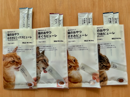 4月1日の続き😊我が家の猫。現在は、シニア高齢期の女の子(アビシニアン)が1匹。他の子たちに先立たれた今は、のんびりと余生を送っている。毎日数多のお気に入り場所を移動しながら、お昼寝したり毛繕いをしたり。男の子のようなベタベタ甘えっ子ではないけれど、まあまあの甘えんぼ。親バカ飼い主としては、悪くない距離感を保っているのではと思っているが、実際はどうなのかな。最近は以前より小食になった。好き嫌いも増した。なんというか、、、好きなもの以外は食べたくないといった感じ。やはり高齢ゆえなのか? もともと大食いな子ではなかったのだけど。。飼い主は、彼女の好きそうなものをあれこれ探す日々。MUJIのフードが評判が良いのでお試し購入。一緒にドライフードも買ったのだけど、一瞬匂いを嗅いで去って行った。2度とそばにも行かなかった。それくらい好みではなかったらしい。・・・・ってことで、ピューレはどうか。1番はささみ。これはすぐにペロペロし始めてあっという間に完食。2番はかつお。(一番右)ちょっと匂いを嗅いでからペロペロ。完食。3番はミックス。半分残した。4番はまぐろ。匂いを嗅いでさって行く。。。。そんなに違うんかい!!・・・・ということで、ささみとかつおをリピしました😸なんであれ完食してくれると飼い主は嬉しい💕💕フード選びのたびはこれからも続くでしょう😂ちなみに、、、、、[RSL] 【猫】【お試し4種セット】無添加ピュア 日本産 猫用おやつ ねこぴゅーれ PureValue5 トライアルセット 16本入 (4本×4種) まぐろ 鶏ささみ かつお 海鮮ミックス 猫 おやつ 国産 キャットフード ウェット ペースト ピューレ 水分補給 投薬補助価格:1,080円(税込、送料無料) (2025/4/7時点)楽天で購入無添加ということで、お試しをした。こちらは撃沈でした。残念😿飼い主は、ネット情報に惑わされずフードをあげたいと思っている。高齢猫にはこんなフード、これはダメ!とかいろいろ書かれている。でもさ、個体差あるじゃない?今は、1日◯gのフード、◯mlの水分、他にも行動パターンとかトイレの回数とか、統計に基づいているのかどうか不明だけど、いろいろなことが数値化されている。とはいえ、その通りにすればいいというわけではなく、真逆でも健康な子はいるわけで結局猫にとっては飼い主ガチャだな、と思ったり。飼い主も不安はいっぱいなのです。うちの子は楽しい猫生を送れているのかなといつも気になっていて。アビシニアンの平均寿命は13~14歳といわれている。それを超してはいるけれど、もっとずっと長生きしてほしいなーと強く願っている💖