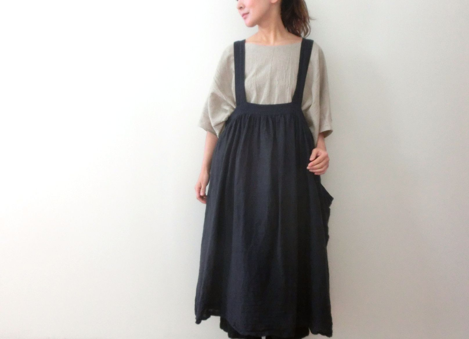 大人のリネン混サロペット