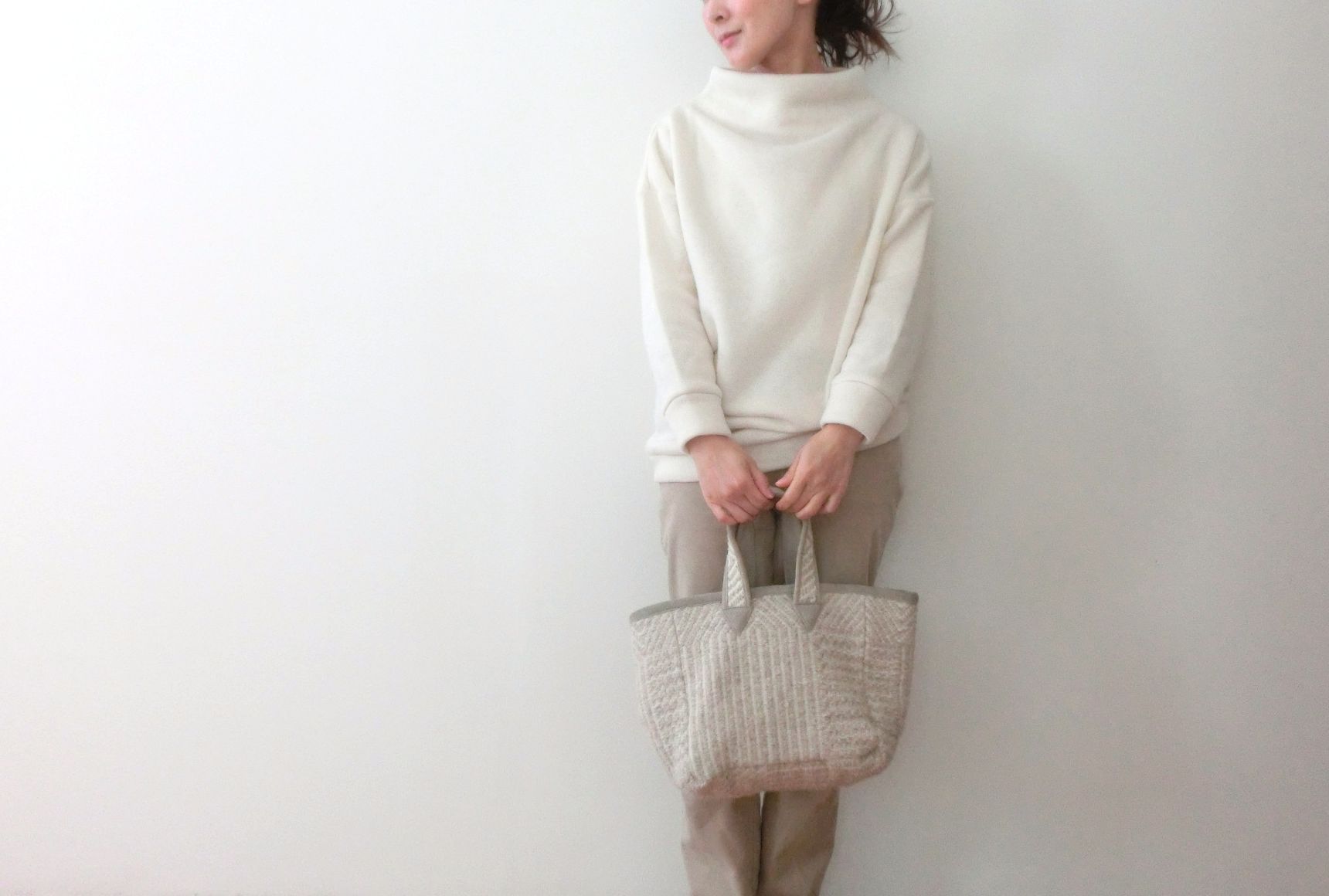 オフホワイトのボトルネックに