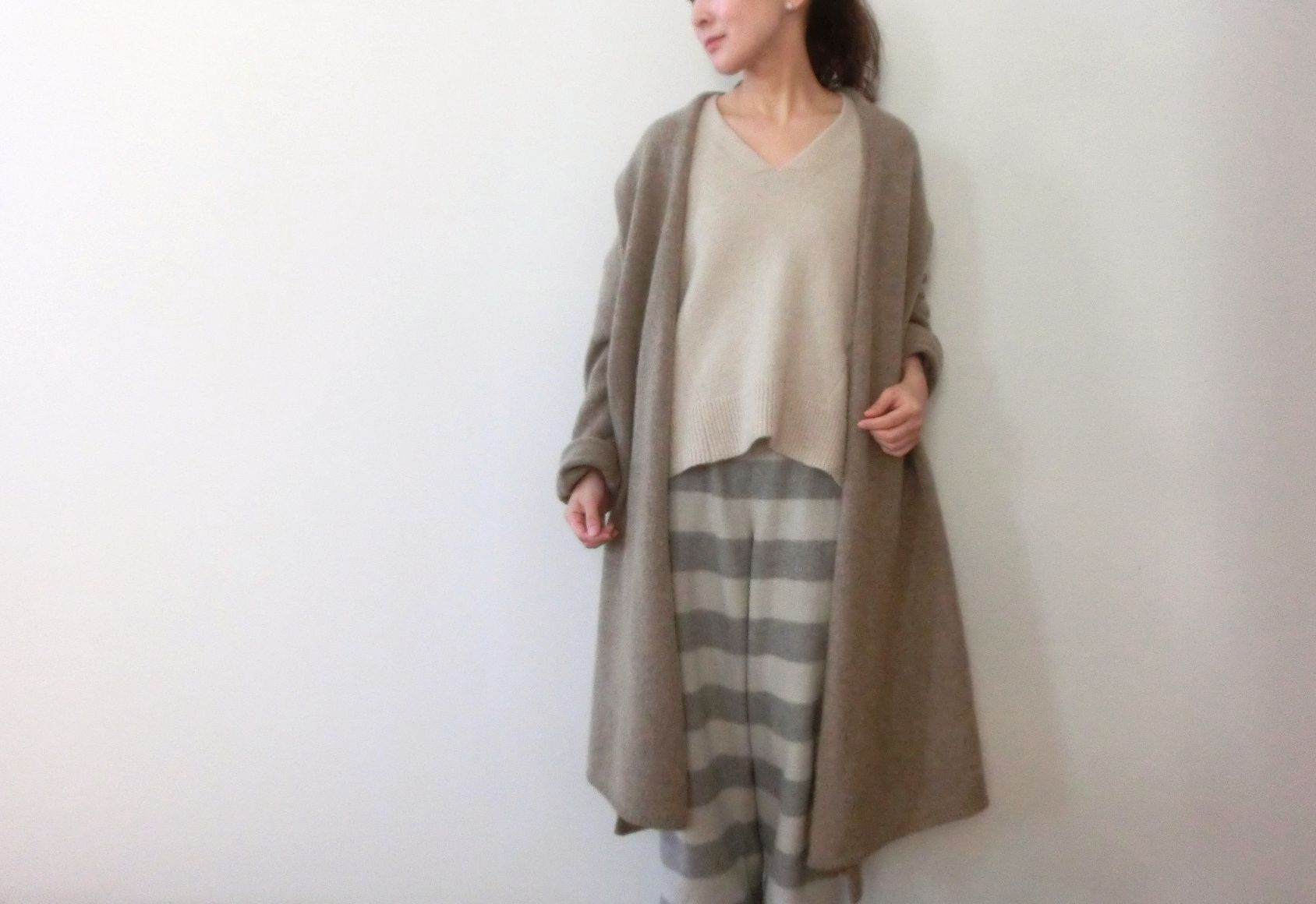 ガウンカーデを重ねて