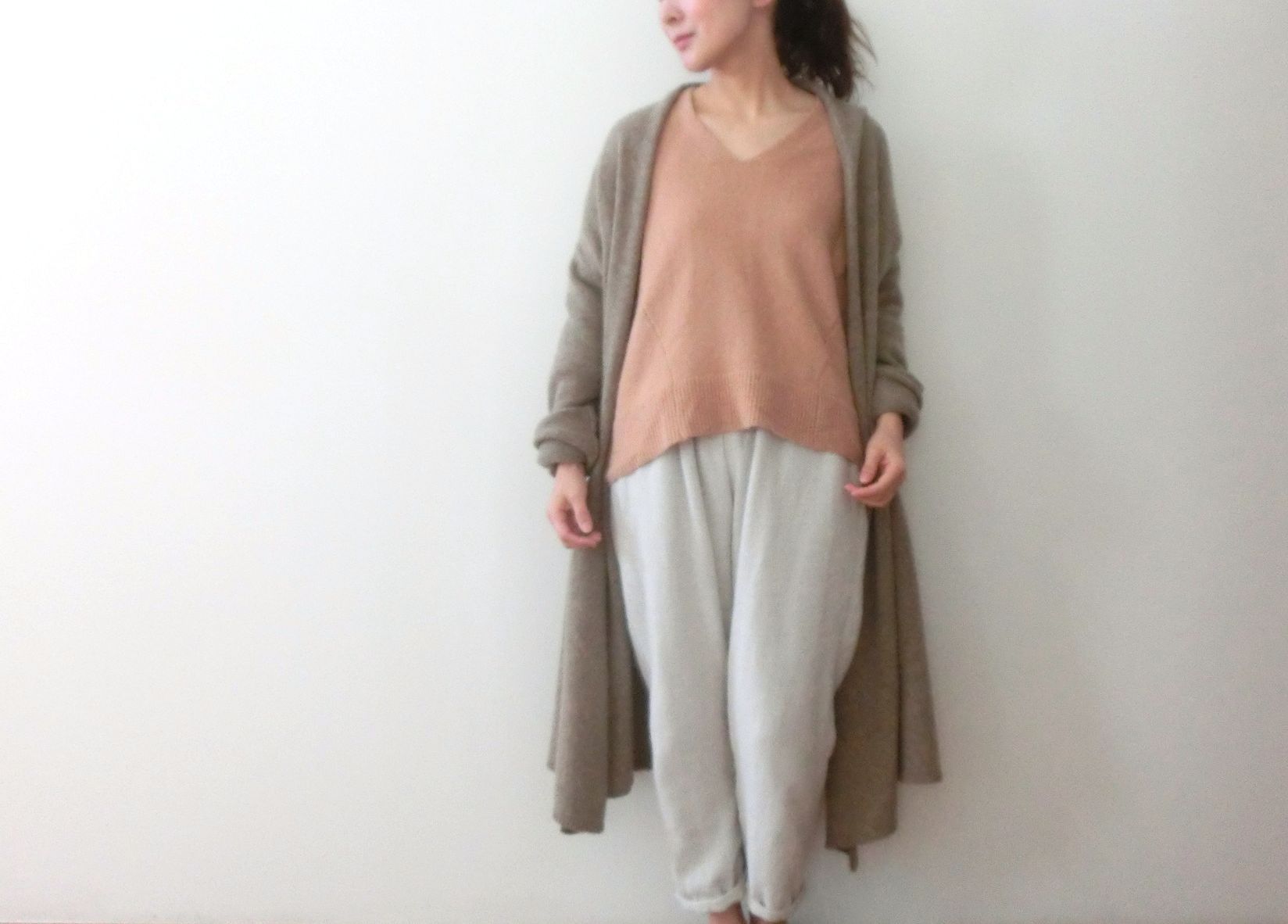 くすんだピンクのVネックに