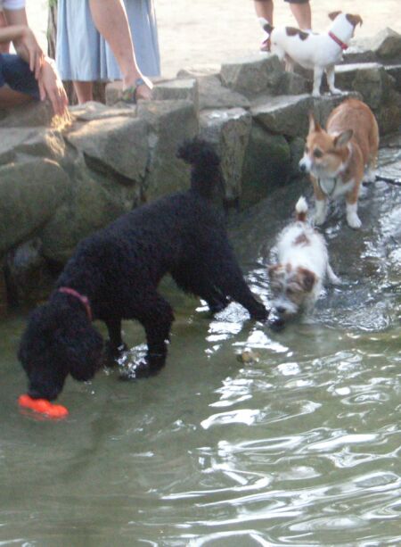 ジャックさんが、夕方5時から宝塚ガーデンフィールズのドッグランに来ると連絡があったので、急遽参加することにしました夏場は、フィールド内のプールに水が張ってあります昨日の、六甲アイランドの水路はプールのような「ぬるま湯」だったのにちょっと冷たいお水で、固まってしまいましたしばらくは、ジャックさんとガウガウできたのですが、相変わらず「しけしけ」犬になってしまいましたジャックさんは、ほんとに楽しそうに遊んでいました。ドッグラン満喫・・・って感じせっかくドッグランにきても、こじんまりと納まる2匹です・・・・・こんどは、走り回って遊んでね~~