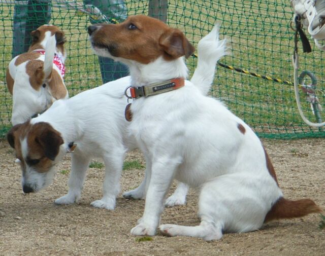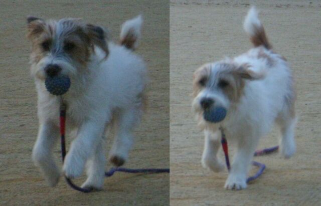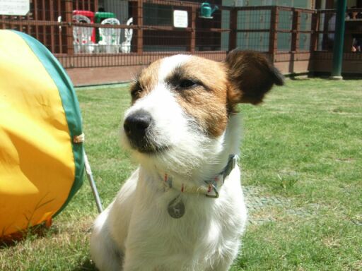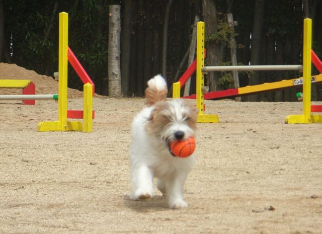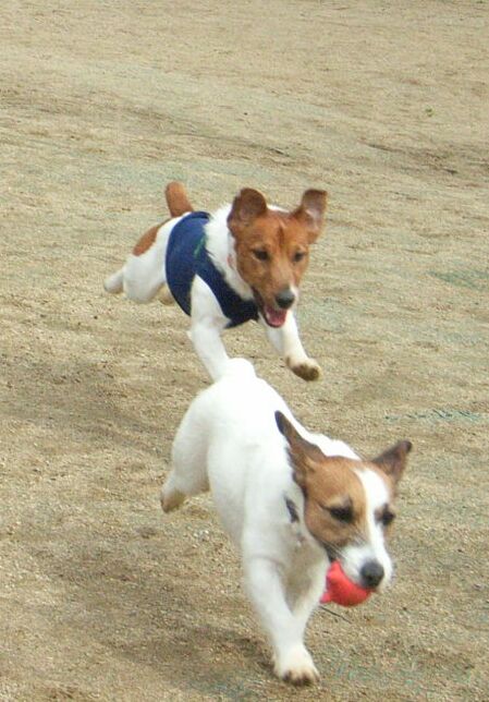前方視界が悪そうなので、くくられてしまいました先週の土曜日には、久しぶりに「宝塚ガーデンフィールズ」の「ドッグラン・ド」に行ってきました。あいかわらず、「リズ」はジャンプ好きです。「ビスキー」は・・・・・ビスキーは、全然ジャンプが出来ません・・・ジャンプの苦手な「ジャックラッセルテリア」って・・・・・でも、ビスキー「レトリーブ」は、得意なんですよ