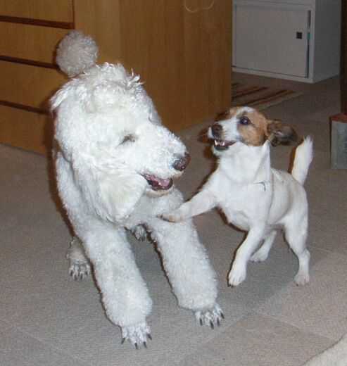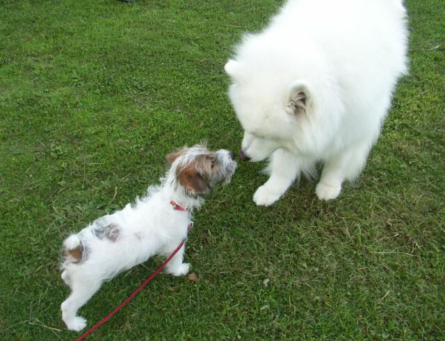 今日は、お天気も良くなったので夕方散歩に、ビス吉も連れて行きましたみんなに会えるかなさっそくキャンディーに遭遇おっきなキャンディーにもガウガウと飛び掛っていきましたさすが3ヶ月パワーその後は、マロン王子、ピュアちゃんも登場最後には、同じジャックのお友達「まおくん」に久しぶりの再会これは、リズのほうが大興奮なんだかんだと、2時間半も公園で遊んでしまいました