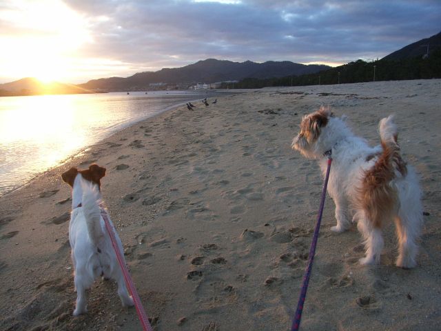 すっかりご無沙汰しておりましたが、ワンコたちは相変わらず元気に過ごしております。飼い主の方が、すっかりズボラ癖がついてしまいまして・・・・・お正月は、例年のように四国の香川県で過ごしておりました。ビスキーにとっては、初の海外旅行&海も初体験でした。夏になったらいっぱい泳ごうね ところで昨日は、久しぶりの大雪でした。朝の散歩の時には、小雪ちゃんだったのですが、その後1日中降り続きあたり一面雪景色になってしまいました。なぜかワンコたちって、雪を見ると「K・O・U・F・U・N☆」ですよね今朝は、いつもの公園に行きました。一面の雪のうえで走り回るワンコたちこの雪なら、犬ぞりに挑戦できるかも・・・・・