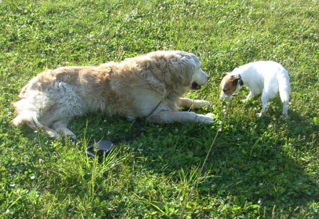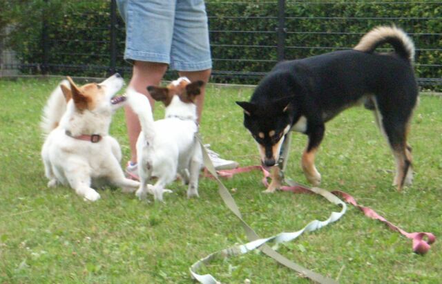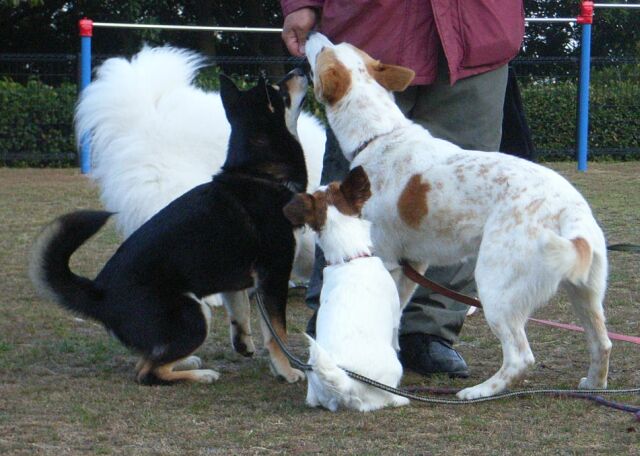 今日は、宝塚ガーデンフィールズのドッグランに行きました。なんと、ジャックさんといっしょです!!とっても久しぶりのランでしたが、ジャックさんとも気が合ったようで、元気に走り回っておりました。お昼ごはんもご一緒させていただきました♪後半、8ヶ月の「サモエド」ちゃんに追い掛け回されて、へこんでしまい退場となりました。でも、夕方散歩では、いつもの公園でいつものメンバーでガウガウ大会でしたっジャックさん、また遊んでくださいね♪