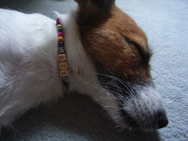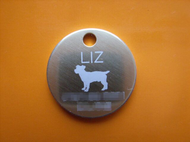 先週、フロント係さんと行った、ドッグランのショップでオーダーした「迷子札」が出来てきました。JRTのシルエットが・オトコマエ・すぎて、ちょっと「リズ」のイメージと違うんですがまーヨシとしときましょう。こいつをどーやってお転婆娘に装着するかが問題ですが、それよりも、今度こそなくさないでほしいものです。「リズ」は、そんなものより、ついでに買ってもらったおもちゃに大興奮♪