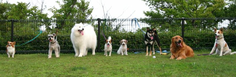 左から、マロン君 ベン君 キャンディ嬢 リズ ビスキー 小太郎君 アンディ君 ピュア嬢 です。コタママに撮影してもらった「集合写真」です。このほかにも参加できなかったお友達ワンコが、たくさんいますがまたの機会があったら是非一緒に撮りましょうリズも最近は、ビスキーのいる生活にも慣れて(あきらめて?)結構一緒に遊ぶようになってきましたヤレヤレですリズ姉が、ビーズでアクセサリーを作ってくれました。お名前は、ウッドビーズです・・・・・さっそく着けてお庭で遊ばせてたら、噛み砕かれました・・・秒殺です・・・・気を取り直して、昨日はちょっとお出かけです到着したのは、六甲アイランドの「ドッグフィールド」です。ここは、地元の方たちが自主管理されているドッグランです広いフィールドに、ワンコがいっぱいいました。ジャックも 4匹もいましたが、あんまりお話も出来ませんでした。リズたちは、ドッグランよりも リバーモールの水路で おおはしゃぎ真っ暗になるまで、泳ぎまくりました